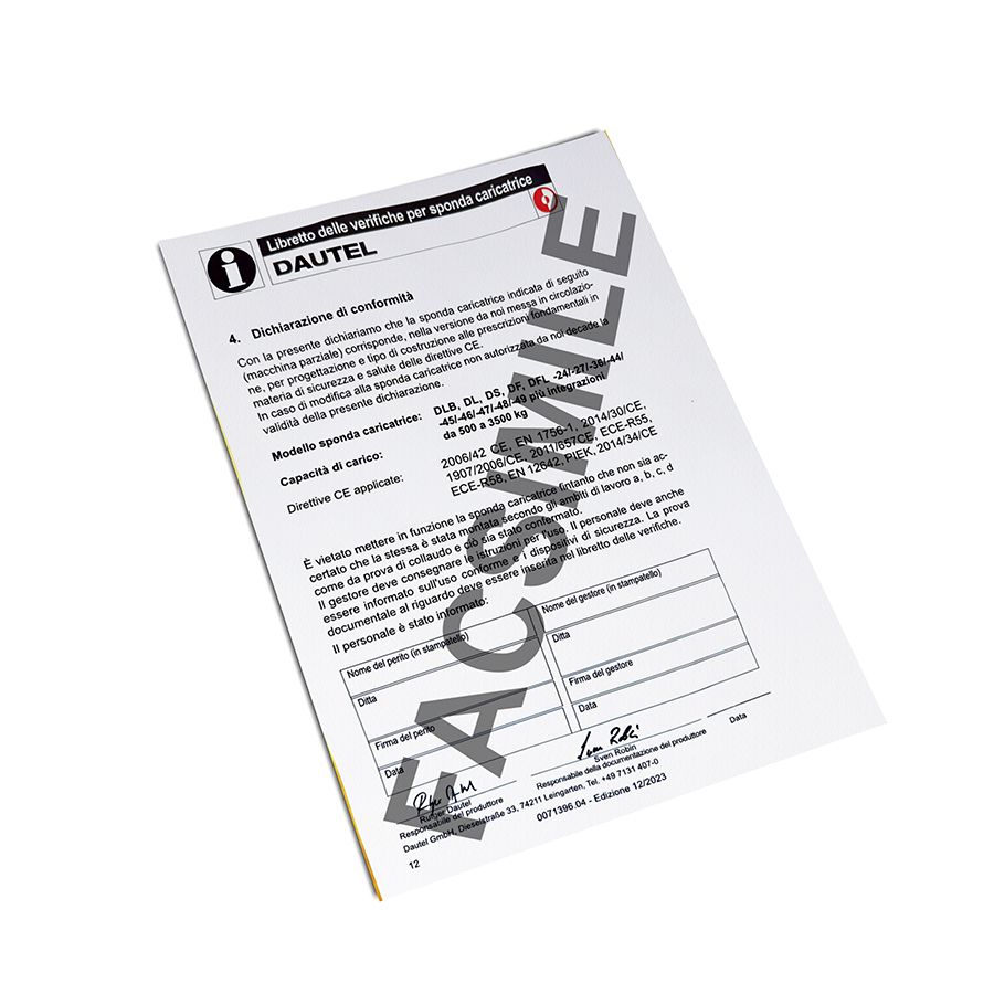 Copie du certificat de conformité CE. Pour continuer la demande, veuillez envoyer le modèle et le numéro de série de la rampe.