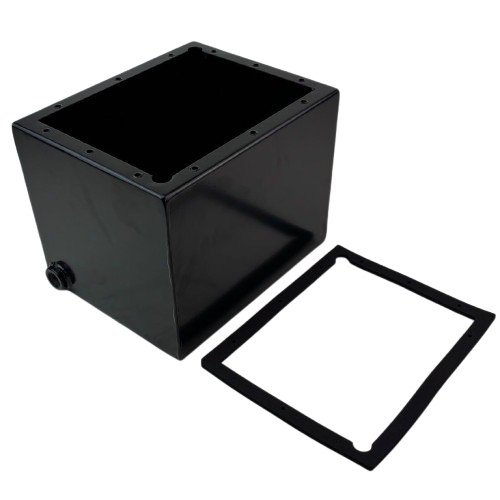 Misure : Larghezza 210 mm Lunghezza 270 mm Altezza 200 mm. Serbatoio in metallo compreso di tappo e guarnizione per evitare il contatto diretto con la cassetta centralina ed evitare con le vibrazioni la rottura di entrambi i pezzi.